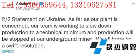 貿(mào)易消息人士稱,烏克蘭的幾家鋼鐵廠,包括管道制造集團 Interpipe以及位于馬里烏波爾的 Azovstal 和 Ilyich 精密管廠家,都是 Metinvest 的一部分,已經(jīng)停止生產(chǎn)和運輸。Interpipe 向 Platts 證實,它已于2月初停止生產(chǎn)和發(fā)貨。2月24日開始罷工。