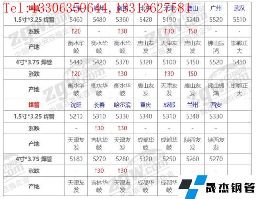 全國15個主要市場1.5寸*3.25 焊管平均價格5357元/噸,較上個交易日上調13元/噸。