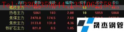 今日螺紋主力期貨漲75,收?qǐng)?bào)4912,漲幅1.55%;熱卷主力漲103,收?qǐng)?bào)5061,漲幅2.08%;焦煤主力漲174.5,收?qǐng)?bào)2470,漲幅7.6%;焦炭主力漲131,收?qǐng)?bào)3133,漲幅4.36%;鐵礦石主力漲8.5,收?qǐng)?bào)821,漲幅1.05%。